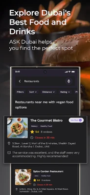 Ask Dubai: Ask AI manhaja ce mai amfani da fasahar AI don taimaka maka gano mafi kyawun kasuwanci a Dubai. Ta hanyar sarrafa harshe, tana ba da shawarwari na musamman kan wuraren cin abinci, ayyuka na musamman, da kasuwancin da ke kare muhalli.