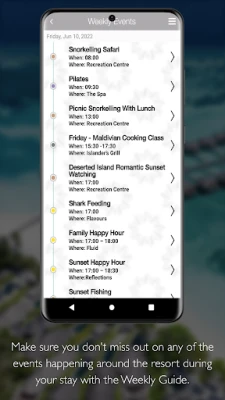 Baya ga haka, manhajar Sun Siyam Iru Fushi tana nuna maka jadawalin nishaɗi na mako mai zuwa, don kada ka rasa kowane taron farin ciki. Idan kana son tsara wani taron musamman ga masoyinka, za ka iya aikawa da buƙata kai tsaye ta hanyar manhajar. Haka kuma, za ka iya duba lissafin kuɗaɗenka da ka kashe yayin da kake otal ɗin, tare da ikon yin ajiyar zamanka na gaba a Sun Siyam Iru Fushi. Wannan manhaja ce take ba ka cikakken iko da kowane bangare na hutunka, tana mai sa shi zama ba manta.